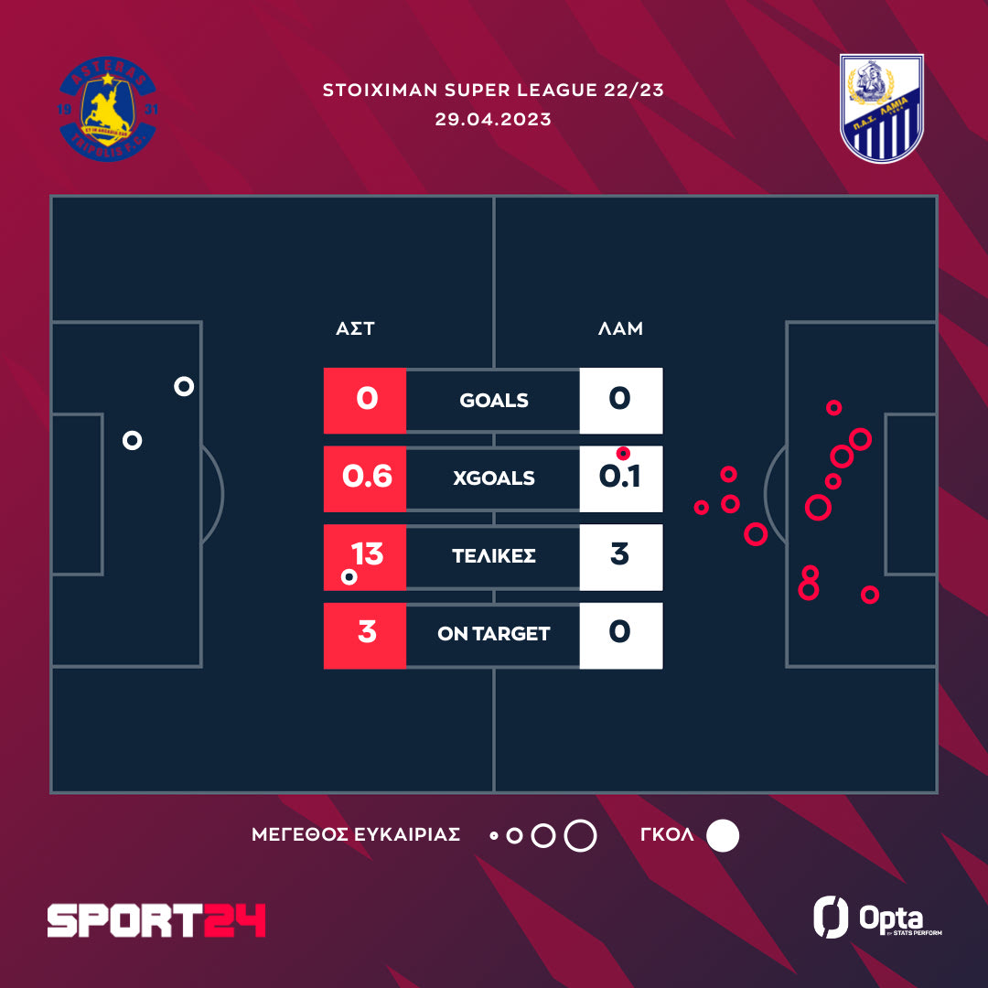 Δεν είχε νικητή η αναμέτρηση ανάμεσα στον Αστέρα και τη Λαμία. Το παιχνίδι στο Θεόδωρος Κολοκοτρώνης για την 5η αγωνιστική των playouts της Stoiximan Super League έληξε 0-0.