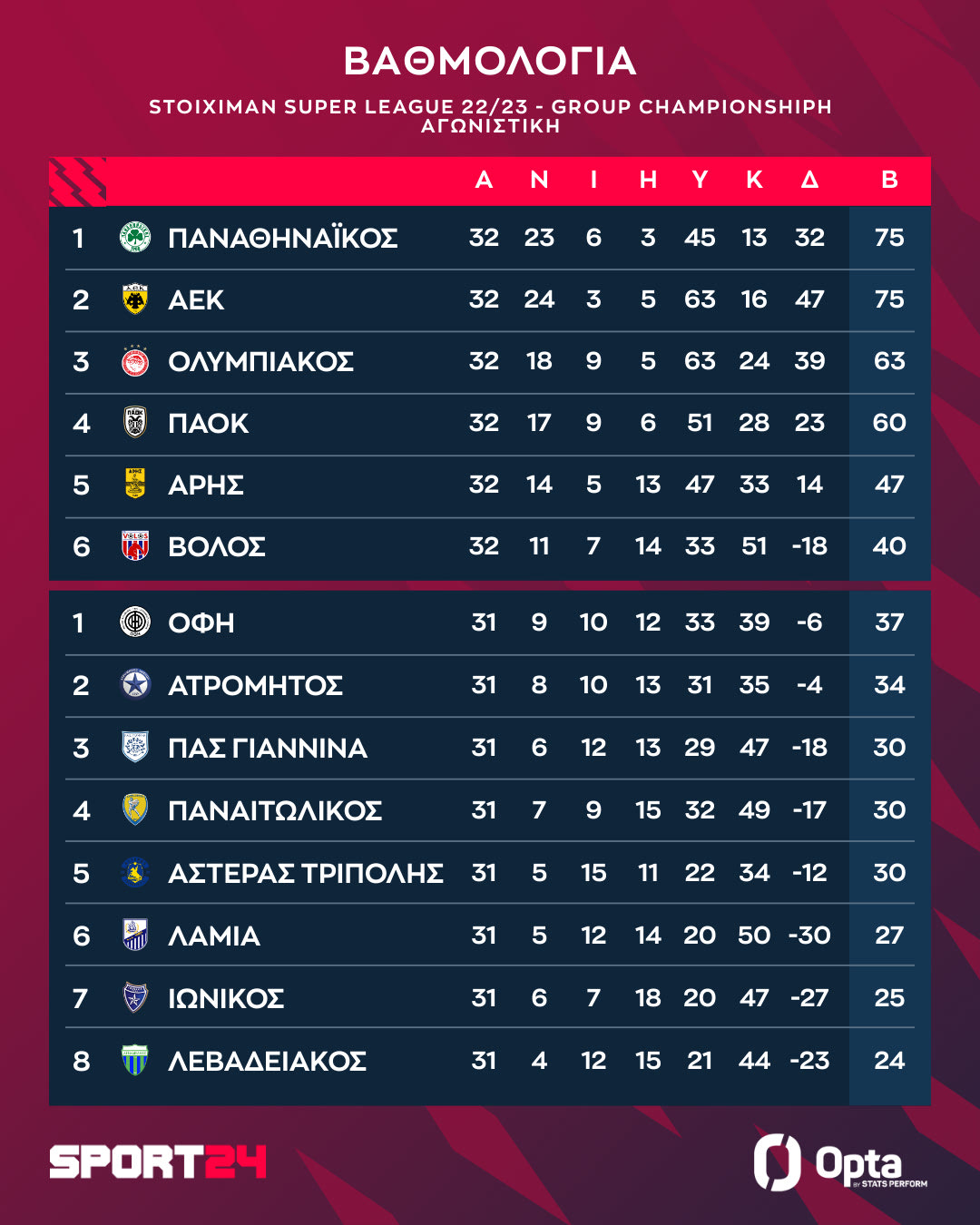 Ο Αστέρας και η Λαμία ήρθαν ισόπαλοι 0-0 για την 5η αγωνιστική των playouts της Stoiximan Super League. Στο +2 από την επικίνδυνη θέση οι Φθιωτοί στο +5 οι Αρκάδες.