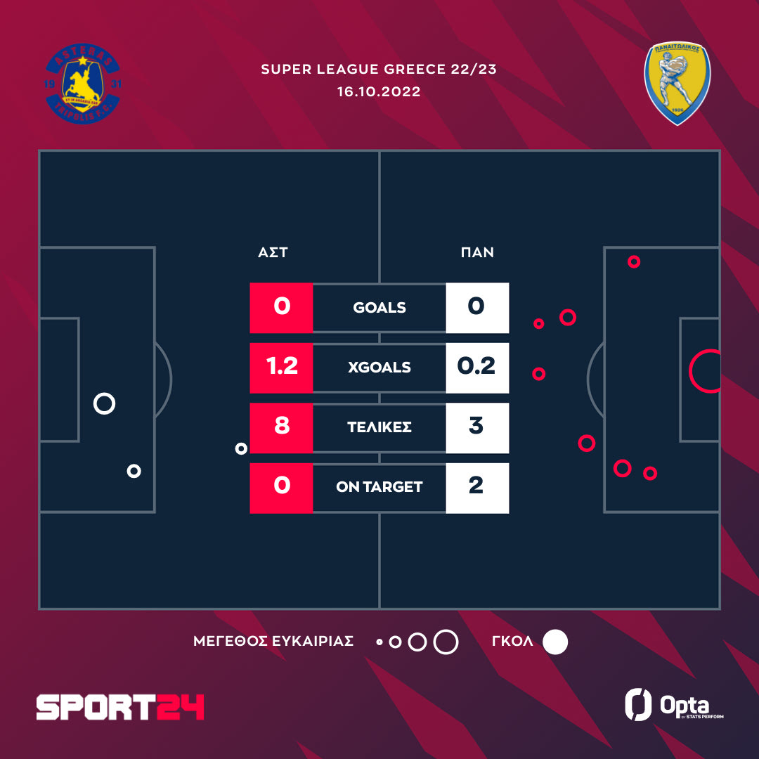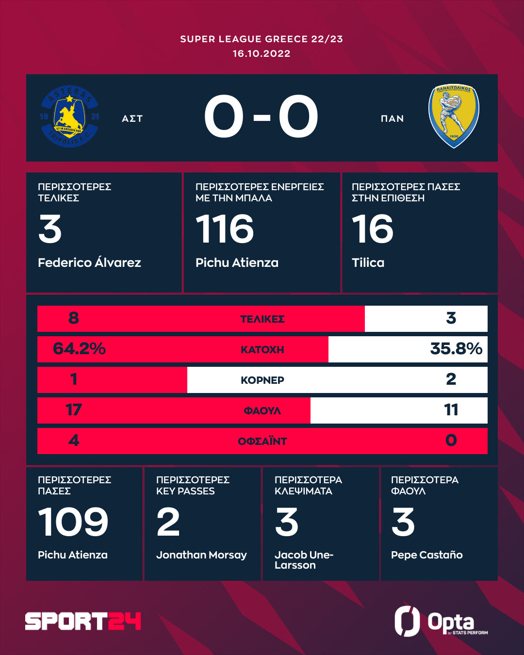 Οι γηπεδούχοι έχασαν τη μεγαλύτερή τους ευκαιρία στο 49′ με τον Ατιένθα. Ο Παναιτωλικός είναι στην 7η θέση με 11 βαθμούς, ενώ ο Αστέρας στην 9η θέση με οκτώ.