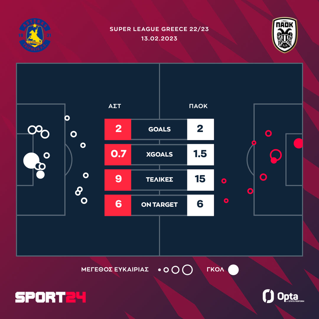 Οι τελικές και τα xgoals στο Αστέρας - ΠΑΟΚ OPTA/SPORT24
