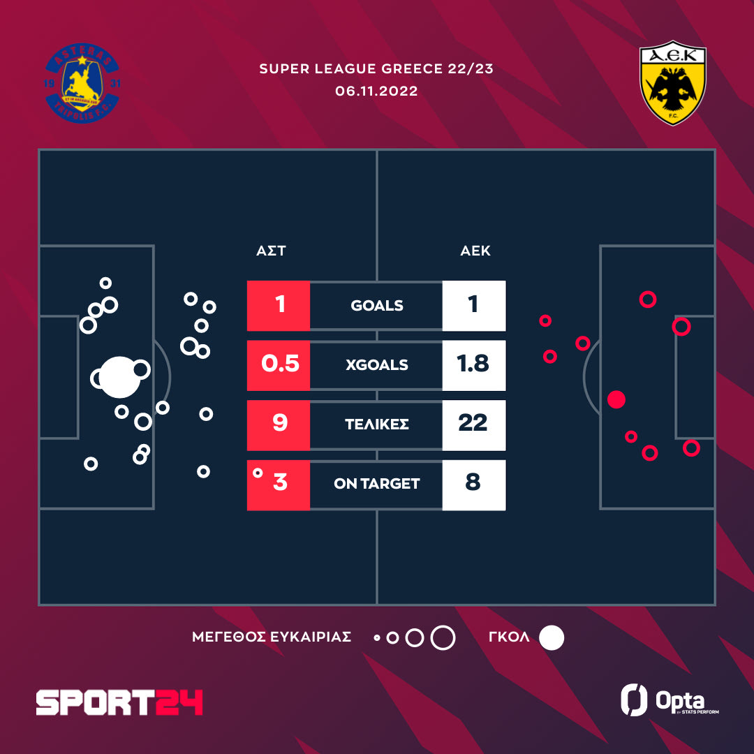 Αστέρας Τρίπολης – ΑΕΚ 1-1: Μπλόκο από τους Αρκάδες και στοπ στο σερί της Ένωσης