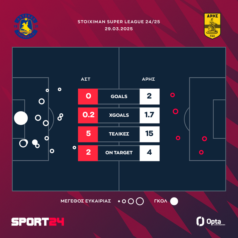 Έτσι ο Άρης, που επέστρεψε στις νίκες έπειτα από δύο σερί ισοπαλίες, ανέβηκε στους 24 βαθμούς και στρέφει την προσοχή του στο παιχνίδι με τον ΟΦΗ (05/04, 19:30) στο “Κλ. Βικελίδης”.