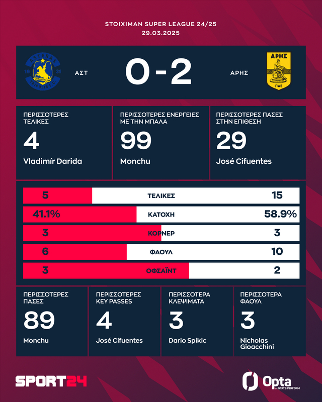 Αστέρας Τρίπολης AKTOR – Άρης 0-2: Κυρίαρχοι στην Τρίπολη οι “κίτρινοι” που οδηγούν την κούρσα για το ευρωπαϊκό εισιτήριο