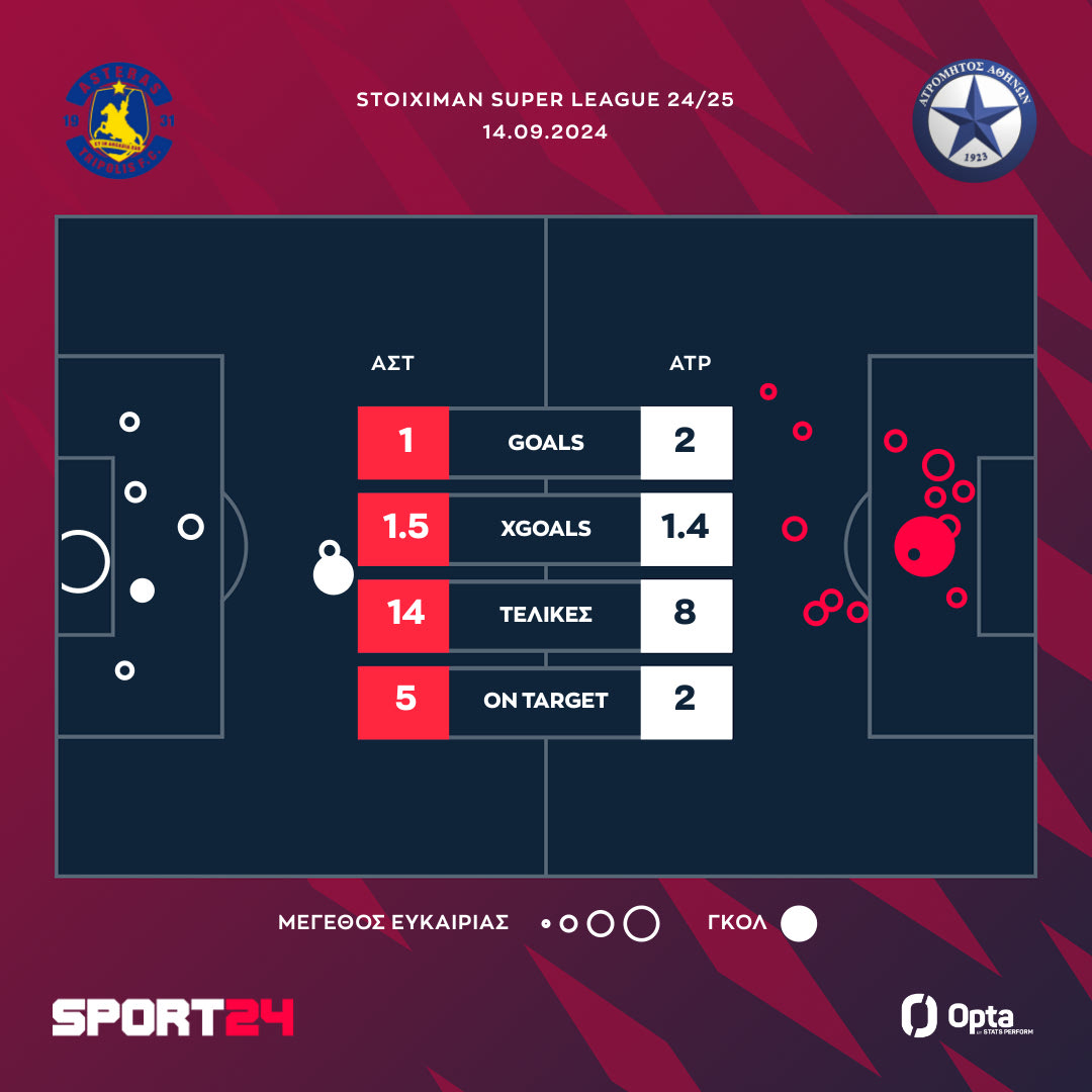 Ο Ατρόμητος απάντησε στο 53′ με τον Καρλίτος. Ο Γκονζάλεθ έκανε το γέμισμα από τα αριστερά και ο Ισπανός άδειασε δύο αντιπάλους με μια προσποίηση, αλλά το σουτ που επιχείρησε ήταν κακό.