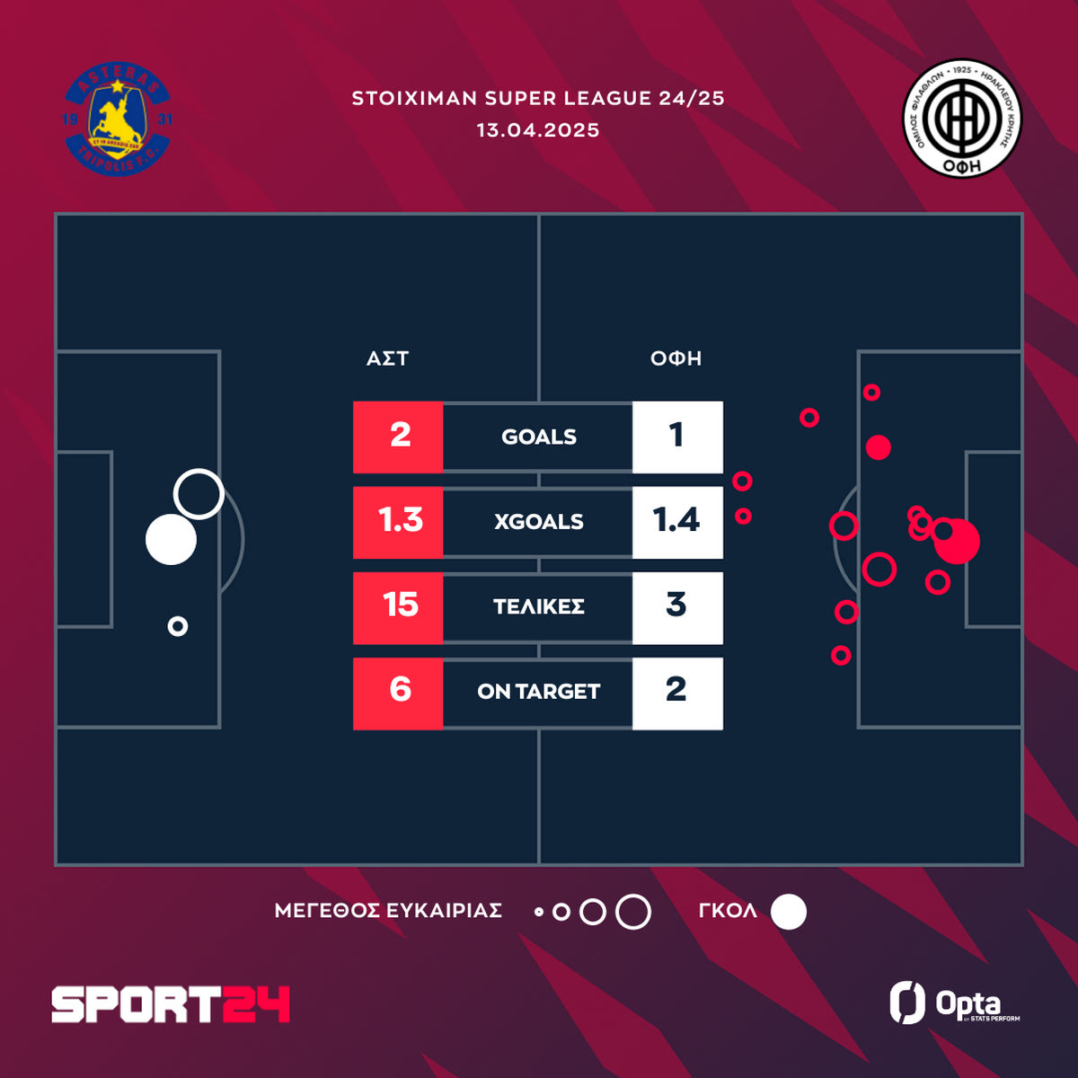 Σχεδόν δύο εβδομάδες μετά τον μεταξύ τους δραματικό δεύτερο ημιτελικό στο Κύπελλο Ελλάδας Betsson, Αστέρας AKTOR και ΟΦΗ συναντήθηκαν ξανά, αυτή τη φορά στην Τρίπολη για την 3η αγωνιστική των playoffs 5-8 της Stoiximan Super League.