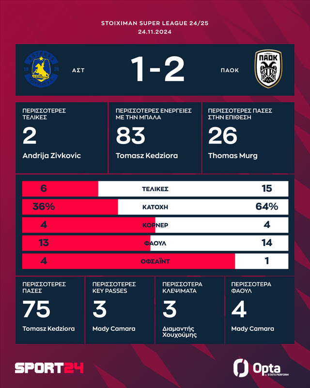 Αστέρας Τρίπολης AKTOR – ΠΑΟΚ 1-2: Ο Δικέφαλος το έφερε τούμπα με καρδιά πρωταθλητή και τον Μπάμπα να δίνει τη λύση