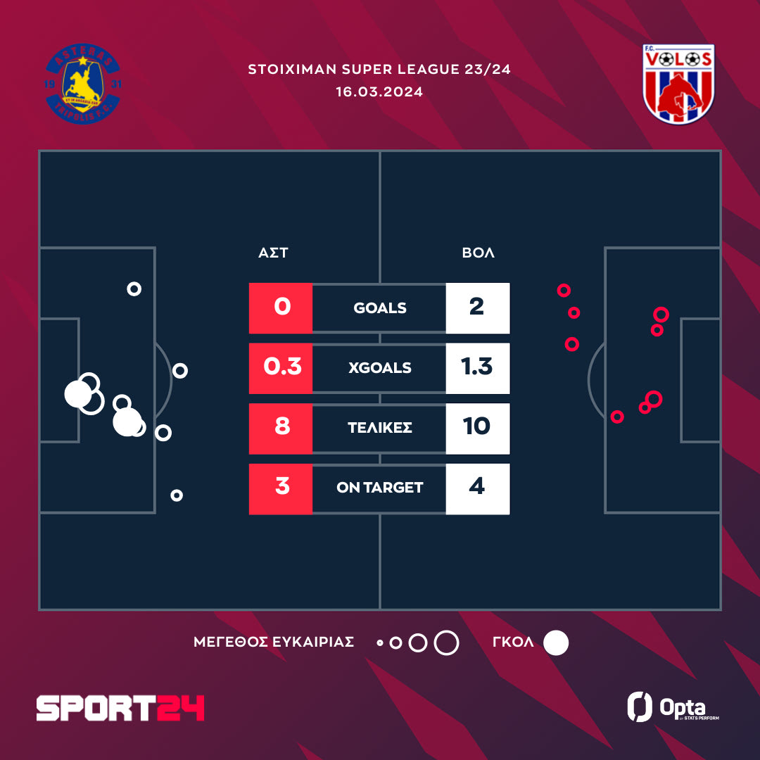 Οι τελικές και τα Expected Goals στο Αστέρας - Βόλος