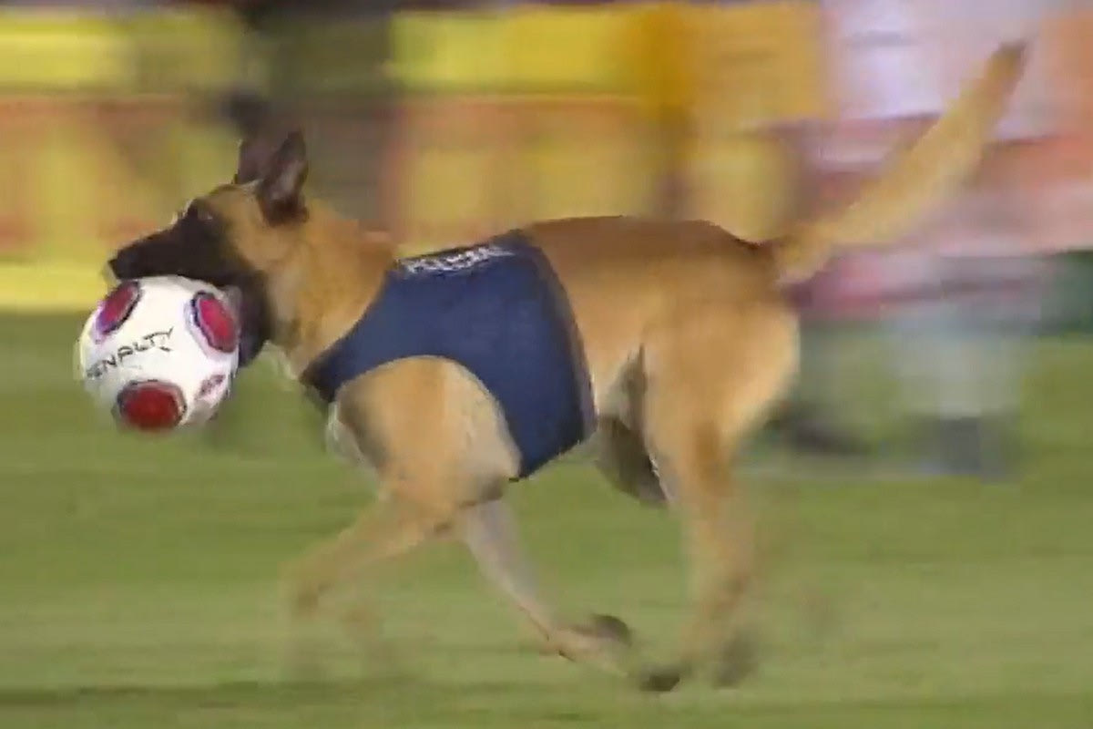 Ένα σουρεάλ και συνάμα εντυπωσιακό σκηνικό έλαβε χώρα κατά τη διάρκεια τελικού πρωταθλήματος στην Βραζιλία, με έναν σκύλο αστυνομίας να κάνει έφοδο στον αγωνιστικό χώρο και να αρπάζει με το στόμα του τη μπάλα της αναμέτρησης.