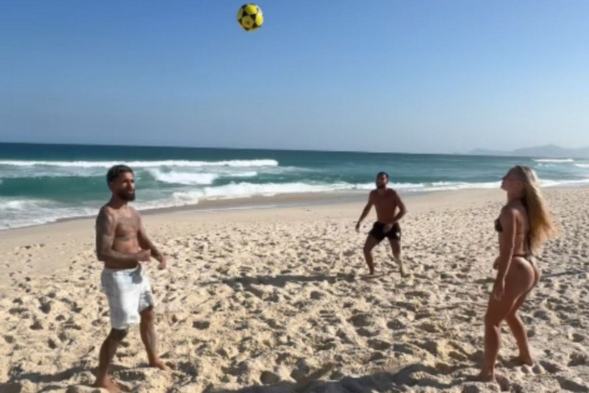 Αλίσα Λέμαν και Ντόουγκλας Λουίζ δεν μπορούν να ζήσουν χωρίς το ποδόσφαιρο ούτε στην παραλία. Το ζευγάρι πήγε για μπάνιο και έπαιξε beach soccer.