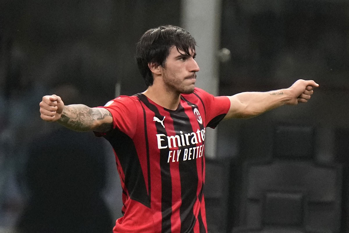 Ο Σάντρο Τονάλι της Μίλαν πανηγυρίζει γκολ που σημείωσε κόντρα στην Κάλιαρι για τη Serie A 2021-2022 στο "Τζιουζέπε Μεάτσα", Μιλάνο | Δευτέρα 30 Αυγούστου 2021 © 2021 Luca Bruno/Associated Press
