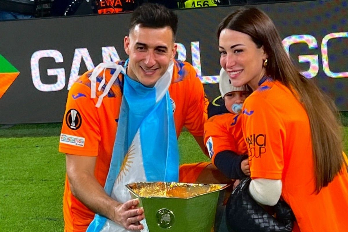 Ο Χουάν Μούσο πανηγύρισε μαζί με την σύζυγό του, Άννα Αριάουντο και τον μικρό τους γιο, την κατάκτηση του Europa League μετά τη νίκη της Αταλάντας επί της Λεβερκούζεν (3-0).