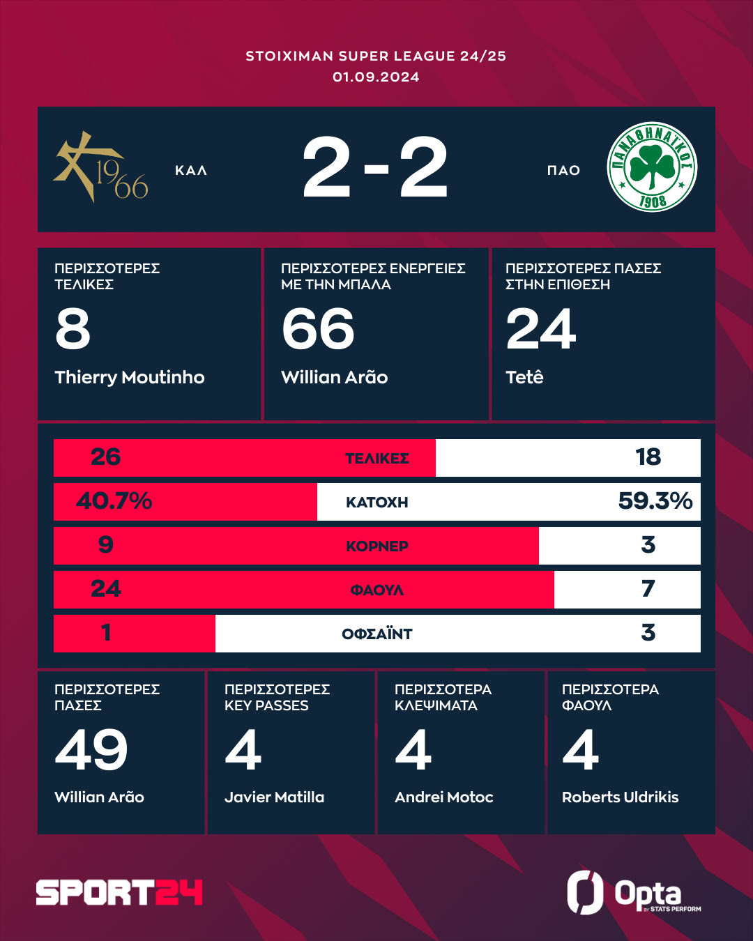 Ισόπαλο 2-2 έληξε το παιχνίδι ανάμεσα σε Athens Kallithea και τον Παναθηναϊκό για την 3η αγωνιστική της Stoiximan Super League. Ο Τετέ έσωσε τον πόντο στο 90+2' απέναντι στους μαχητικούς νεοφώτιστους.