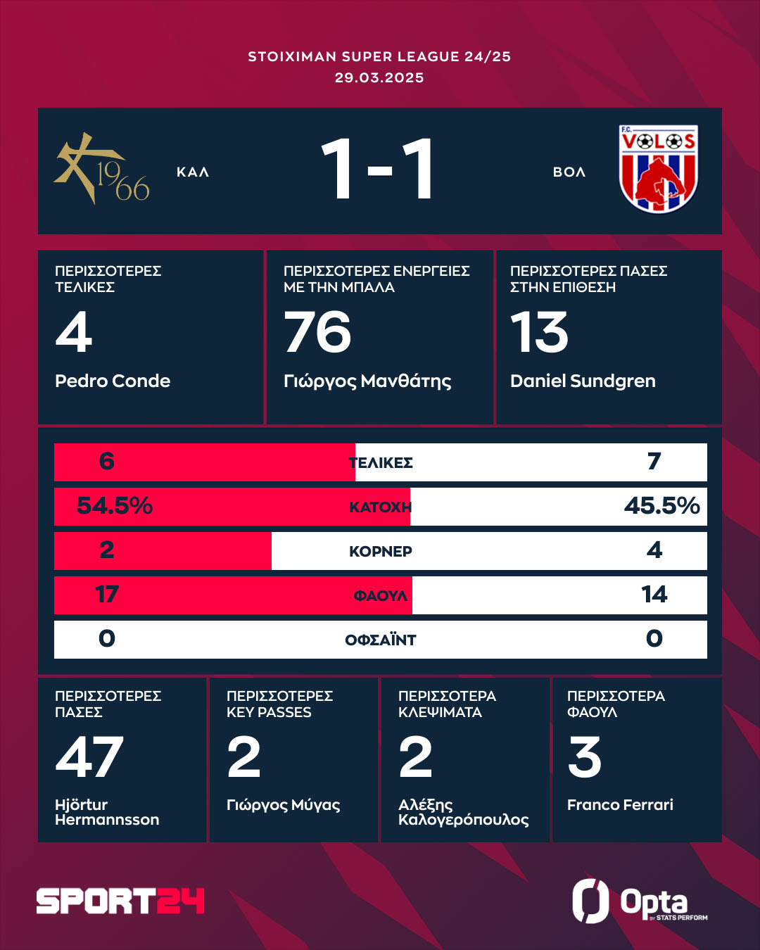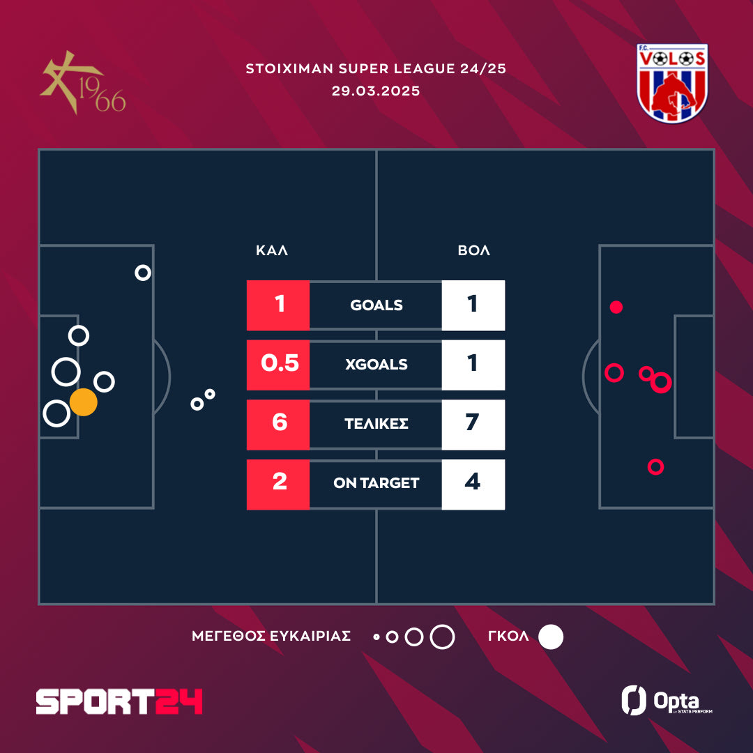Ο Βόλος κρατούσε το προβάδισμα κόντρα στην Athens Kallithea με το αυτογκόλ του Εντιαγέ, αλλά ισοφάρισε στο 90+5′ με τον Λεμπόν και έσωσε την παρτίδα. Η διαφορά των δύο ομάδων διατηρήθηκε στο 90+5′.