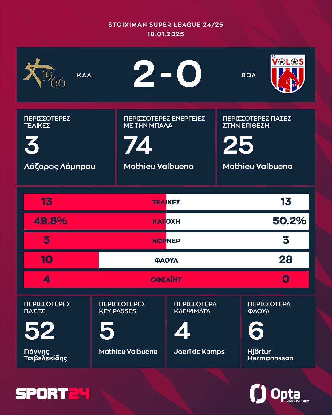 Η Athens Kallithea επιβλήθηκε 2-0 του Βόλου στη Λεωφόρο, με τον Σοΐρι και τον Ντεμέτριους να πετυχαίνουν δύο γκολ, χαρίζοντας στην ομάδα τους μία πολύ σημαντική νίκη στο πλαίσιο της 19ης αγωνιστικής της Stoiximan Super League.