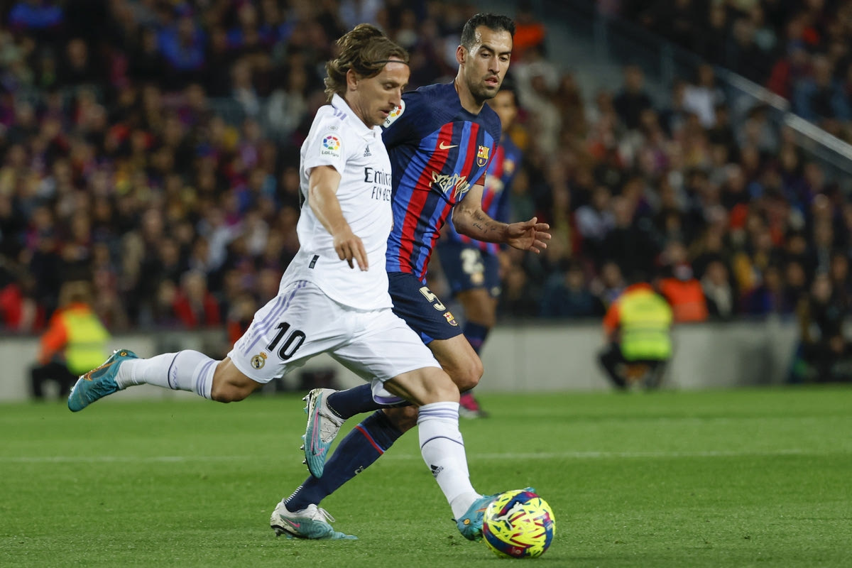 Ο Μόντριτς με τον Μπουσκέτς στο Ρεάλ - Μπαρτσελόνα © 2023 Joan Monfort / AP IMAGES