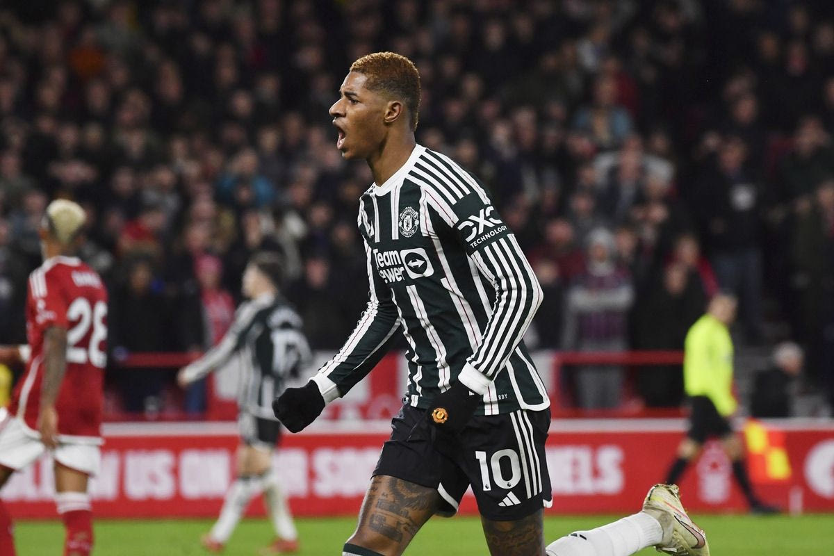 Ο Μάρκους Ράσφορντ πανηγυρίζει στον αγώνα της Γιουνάιτεντ με τη Νότιγχαμ