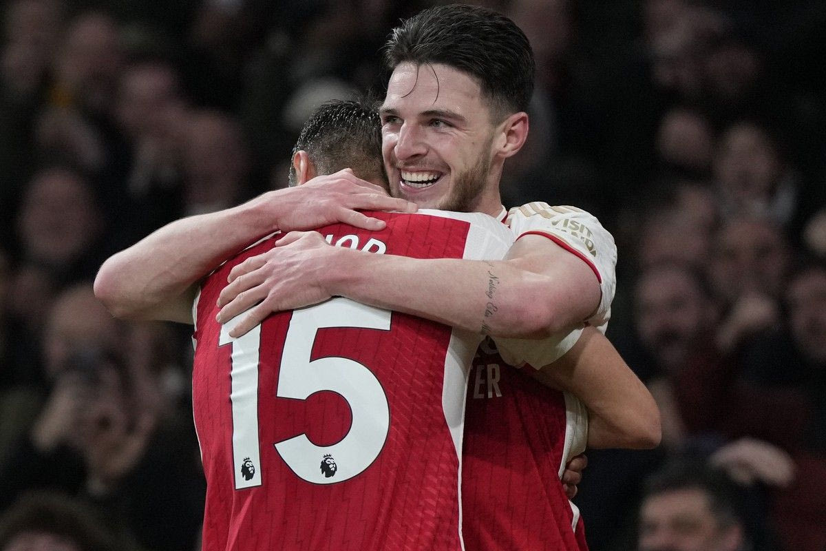 Οι Ράις και Κίβιορ πανηγυρίζουν γκολ της Άρσεναλ κόντρα στην Νιούκαστλ | 24 Φεβρουαρίου 2024