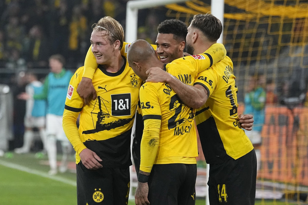 Οι παίκτες της Ντόρτμουντ πανηγυρίζουν το γκολ του Μπραντ