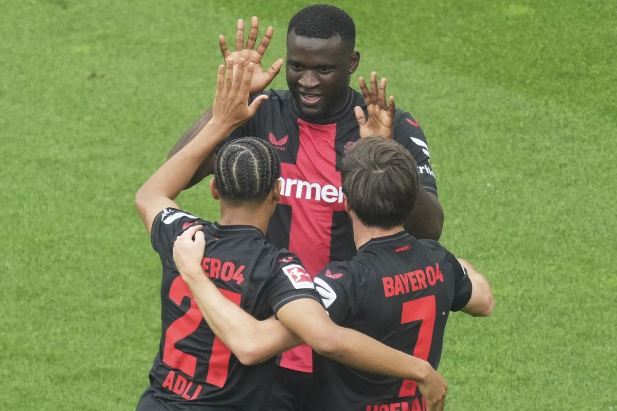 Ο Βίκτορ Μπονιφέις πανηγυρίζει γκολ της Λεβερκούζεν κόντρα στην Άουγκσμπουργκ