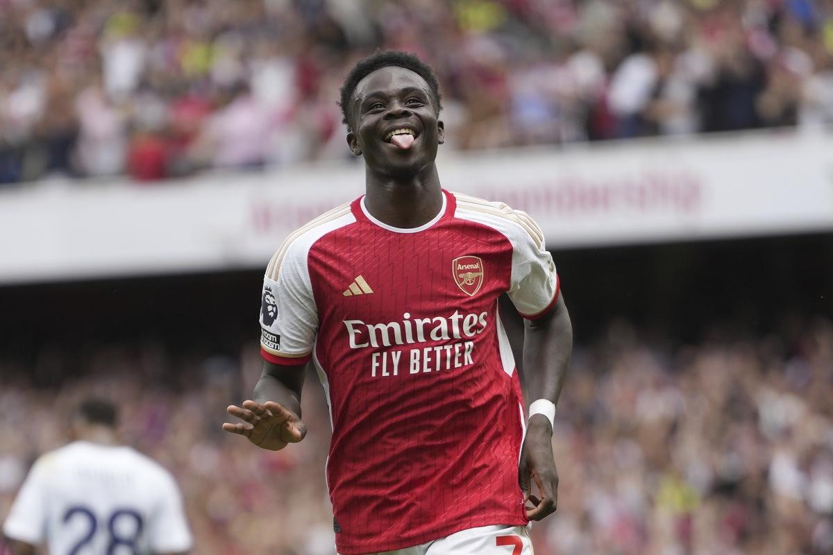 Ο Μπουκαγιό Σακά πανηγυρίζει αφού σκόραρε στο ματς της Άρσεναλ με τη Νότιγχαμ