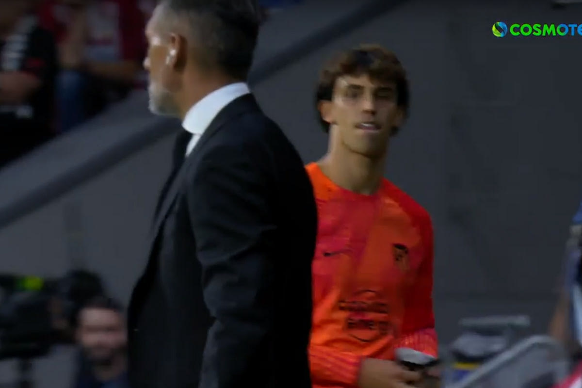 Ο Φέλιξ δεν χρησιμοποιήθηκε από τον Σιμεόνε στην αναμέτρηση της Ατλέτικο κόντρα στην Μπριζ και πέταξε νευριασμένος τη σαλιάρα του, καθώς επέστρεφε από την προθέρμανση.