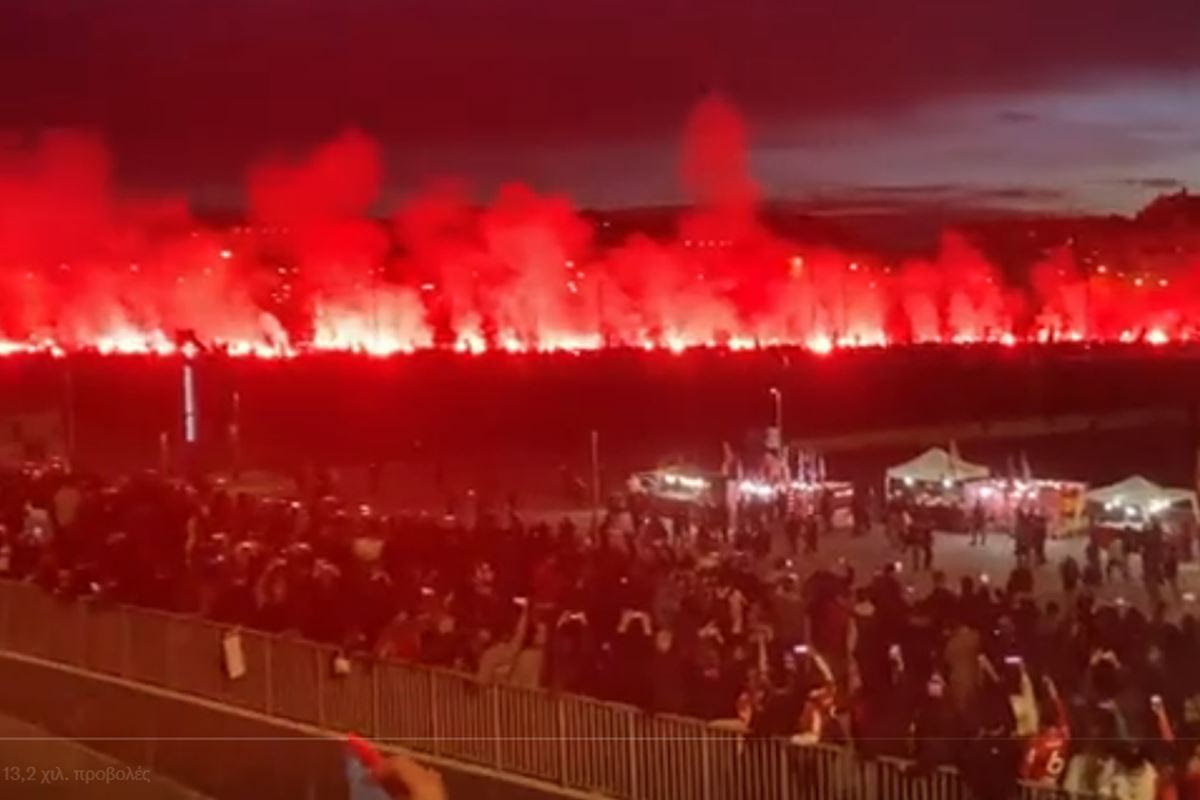 Οι φίλοι της Ατλέτικο δημιούργησαν μια αδιανόητη ατμόσφαιρα έξω από το “Γουάντα Μετροπολιτάνο” κατά την άφιξη της αποστολής της ομάδας στο γήπεδο για το παιχνίδι της φάσης των 16 του Champions League με τη Μάντσεστερ Γιουνάιτεντ (22:00, Cosmote Sport 2HD + Mega, live από το SPORT24).