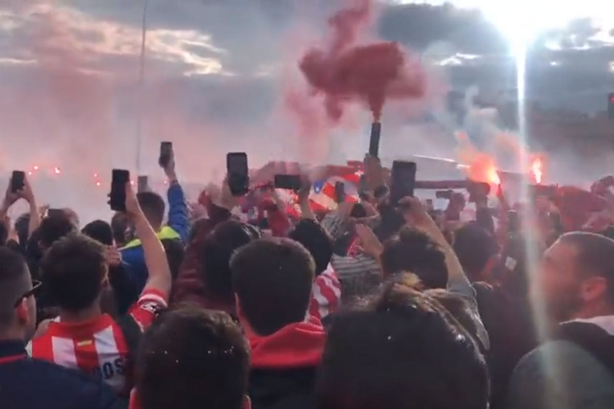 Περίπου 1,5 ώρα πριν από την έναρξη της αναμέτρησης, το πούλμαν των “ροχιμπλάνκος” έφτασε στο Μετροπολιτάνο και εκεί οι φίλοι της Ατλέτικο έστησαν ένα τρελό πάρτι, ανάβοντας καπνογόνα για να κάνουν τη τη νύχτα μέρα και τραγουδώντας συνθήματα για την αγαπημένη της ομάδα.