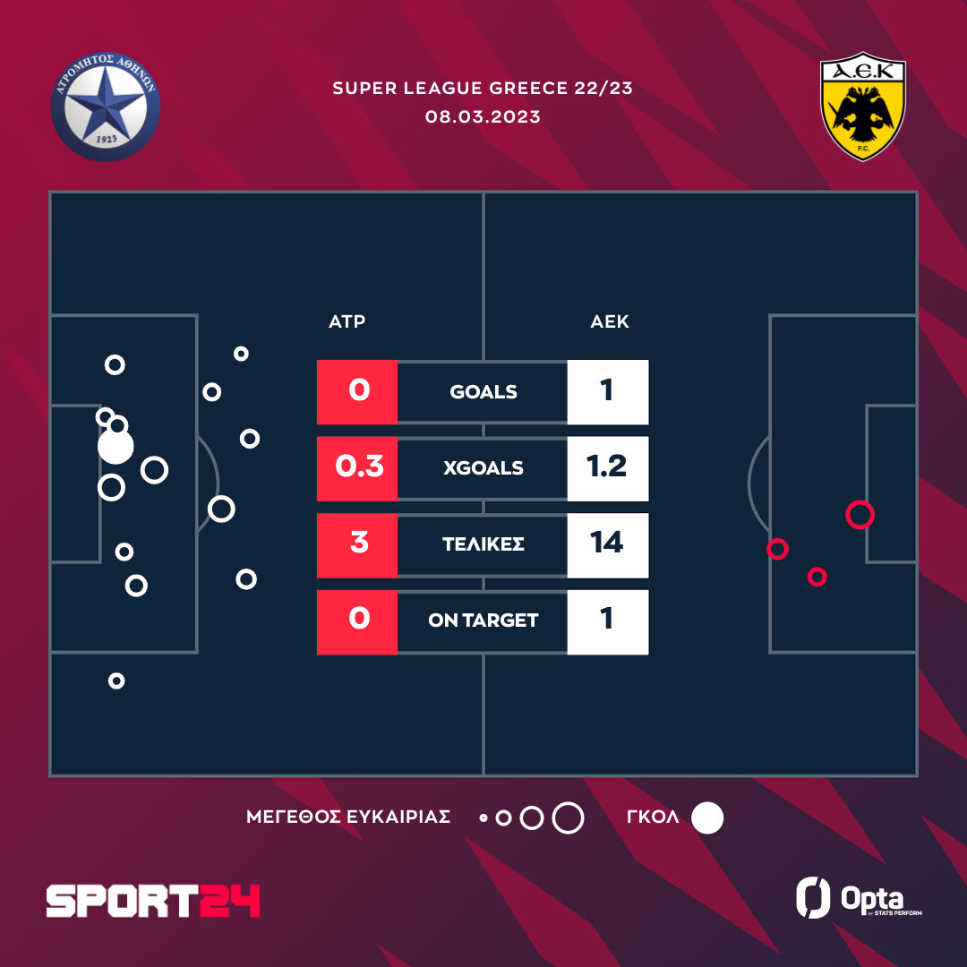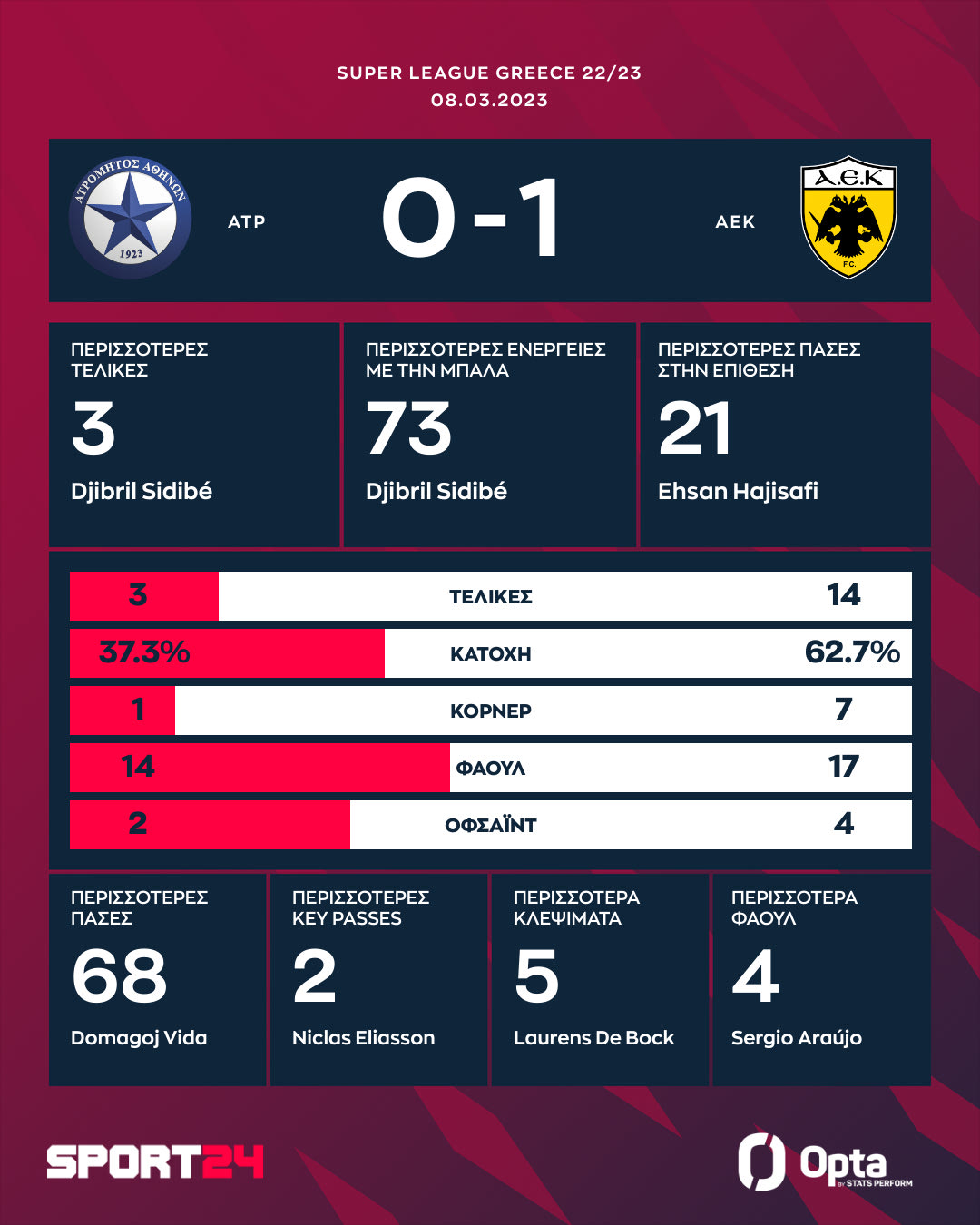 Η ΑΕΚ πέρασε από το Περιστέρι, επικράτησε 1-0 του Ατρομήτου με γκολ του Τσούμπερ στο 31ο λεπτό και πέρασε στην κορυφή της βαθμολογίας στο +1 από τον Παναθηναϊκό και στο +6 από τον Ολυμπιακό.