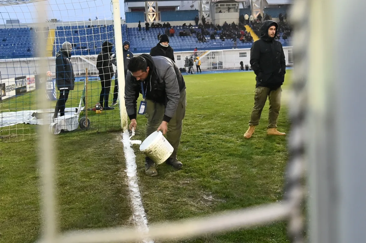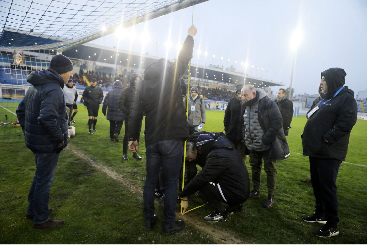 Οι εστίες μετρήθηκαν και όντως διαπιστώθηκε πως η μια εστία είναι τρία εκατοστά πιο κοντή και η άλλη πέντε. Οι άνθρωποι του γηπέδου σκάβουν τις δύο εστίες στη γραμμή, προκειμένου να είναι τα δοκάρια στις σωστές διαστάσεις.