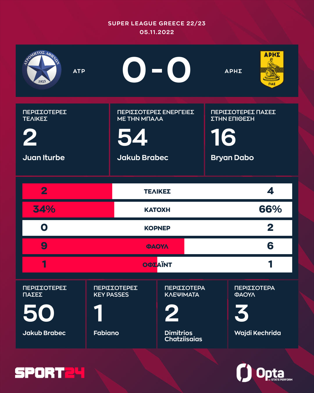 Δεν είχε νικητή η αναμέτρηση ανάμεσα στον Ατρόμητο και τον Άρη (0-0) στο Περιστέρι για την 11η αγωνιστική της Super League, με τους δύο ομάδες να συνεχίζουν να αγνοούν το τρίποντο.