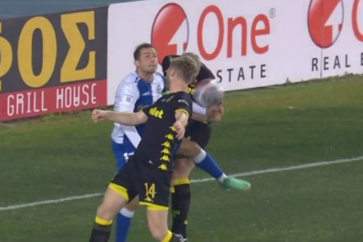 Όμως ο Μανούχος στο VAR κάλεσε τον διαιτητή να δει την επίμαχη φάση και έδωσε το πέναλτι (και όχι κόρνερ στον Ατρόμητο). Μάλιστα την ώρα που έκανε έλεγχο στο μόνιτορ έδωσε κίτρινη στον Γιάννη Αγγελόπουλου από πλευράς Περιστεριωτών.
