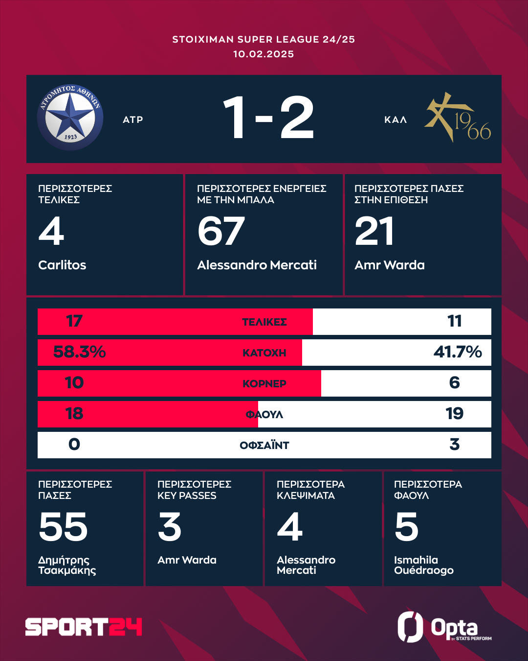 ATHENS KALLITHEA: Γκέλιος, Μεχίας, Ισιμάτ, Πασαλίδης, Μακγκάρι, Μερκάτι (86′ Μανθάτης), Μεγιάδο, Μουγκέ (62′ Σοΐρι), Βαλμπουενά (61′ Ματίγια), Ντεμέτριους (86′ Τσιβελεκίδης), Αλφαρέλα (74′ Γιάνι).