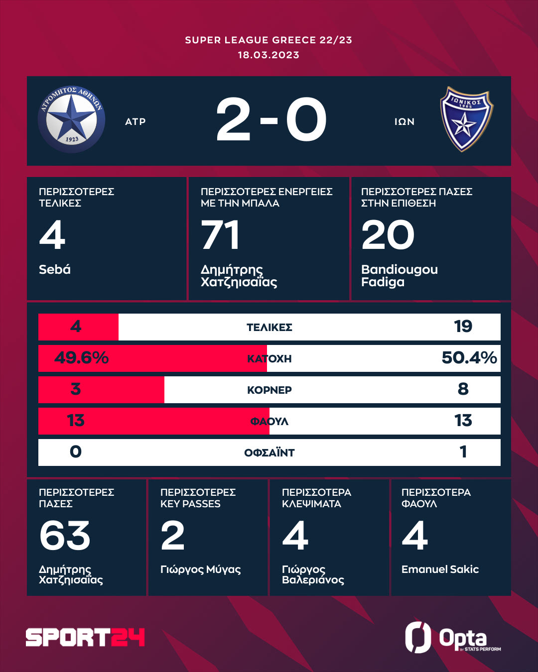 Σκόρερ για τους Περιστεριώτες ήταν ο Αγκιμπού Καμαρά, ο οποίος στην 7η συμμετοχή του με την ομάδα άνοιξε λογαριασμό, πετυχαίνοντας το πρώτο του γκολ, κι ο Έρλινγκμαρκ που σφράγισε τη νίκη.