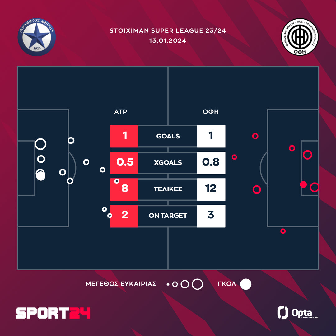 Οι Κρητικοί είχαν τεράστια ευκαιρία να πάρουν το προβάδισμα στο 39ο λεπτό της αναμέτρησης ξανά με τον Μπάκιτς, ο οποίος από διαγώνια θέση έκανε το πλασέ, με την μπάλα να σταματάει στο οριζόντιο δοκάρι του Τσιντώτα.