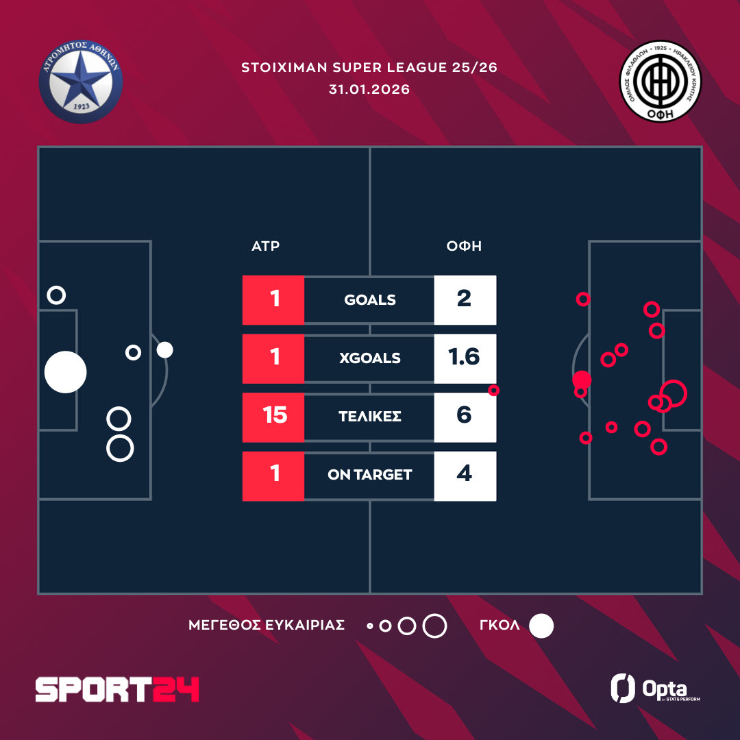 Στην βαθμολογία, ο ΟΦΗ σκαρφάλωσε στην 8η θέση με 21 πόντους. Από την άλλη, ο Ατρόμητος έμεινε στους 17 πόντους και βρίσκεται στην 10η θέση.