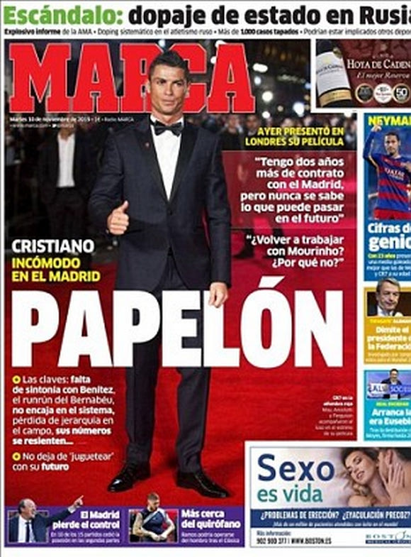 Το ρεπορτάζ αναφέρει ότι ο Ρονάλντο δεν έχει καλή σχέση ( επικρατεί δυσαρμονία, είναι η ακριβής μεταφορά) με τον προπονητή, Ράφα Μπενίτεθ και δυσκολεύεται να προσαρμοστεί στη φιλοσοφία του Ισπανού, ενώ νιώθει ότι έχει χάσει την πρωτοκαθεδρία εντός της ομάδας, κάτι που έχει επηρεάσει και τις επιδόσεις του. Ο Πορτογάλος έχει αρχίσει να κάνει διάφορες σκέψεις αναφορικά με το μέλλον του, το οποίο ίσως δεν είναι στη Μαδρίτη.