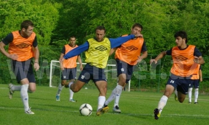 Την πρώτη τους προπόνηση... ημίγυμνοι έκαναν οι παίκτες της Ίντερ Μπακού, εξαιτίας της ζέστης που επικρατεί στη χώρα.