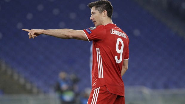Ο Ρόμπερτ Λεβαντόβσκι πανηγυρίζει γκολ του με τη φανέλα της Μπάγερν κόντρα στην Λάτσιο για το Champions League