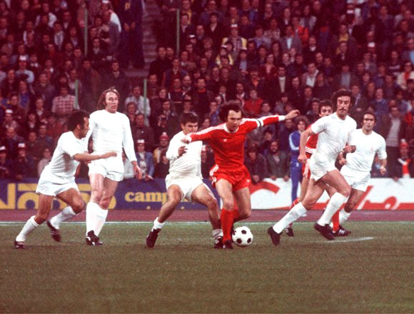 Η πρώτη φορά που Ρεάλ και Μπάγερν βρέθηκαν αντιμέτωπες στην Ευρώπη, στα ημιτελικά του Πρωταθλητριών το 1976. Ο Μπέκενμπαουερ με τη μπάλα, δεξιά του ο Ντελ Μπόσκε, πίσω του ο Καμάτσο και αριστερά από τον Καμάτσο, ο Γκίντερ Νέτσερ