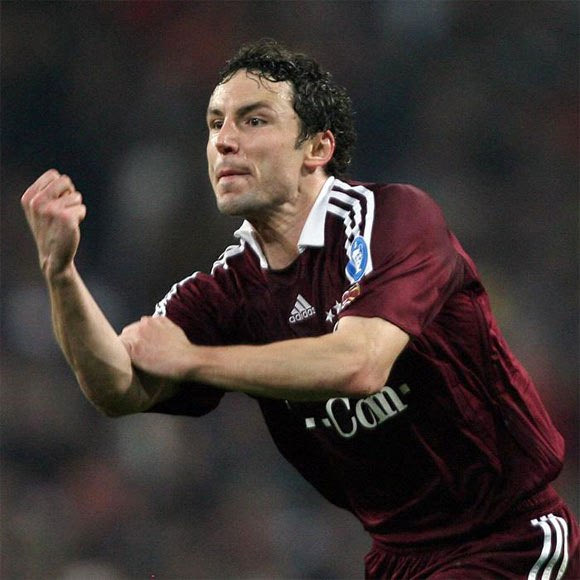 Ο Φαν Μπόμελ απευθύνει “φίλαθλο χαιρετσιμό” στην κερκίδα του “Μπερναμπέου” μετά το 3-2 (20/2/2007)