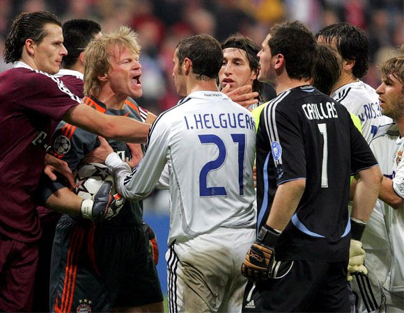 Η κληρωτίδα δεν έλεγε να αφήσει με τίποτα στην ησυχία τους τις δυο ομάδες και έτσι, για τρίτη συνεχόμενη χρονιά Ρεάλ και Μπάγερν βρέθηκαν αντιμέτωπες σε νοκ άουτ φάση του Τσάμπιονς Λιγκ, αυτή το φορά στα προημιτελικά. Πρώτο ματς στο Μόναχο, όπου η Ρεάλ προηγήθηκε νωρίς 0-1 με τον Γκέρεμι, όμως οι Βαυαροί πετυχαίνοντας δυο γκολ στο τελευταίο δεκάλεπτο με τους Έφενμπεργκ και Πιζάρο, έκαναν την ανατροπή και ταξίδεψαν στην Ισπανία με το υπέρ τους 2-1, αλλά και με πολλές προκλητικές δηλώσεις, κυρίως του τερματοφύλακα και αρχηγού τους, Όλιβερ Καν. “Κάνουν διαφημίσεις, επιδεικνύονται, αλλά από μπάλα τίποτα!”, ήταν τα λόγια του Καν, ο οποίος είχε ξεκαθαρίσει στους δημοσιογράφους πως ήταν σίγουρος ότι δεν πρόκειται να δεχτεί δυο γκολ (αν και ένα θα ήταν αρκετό). Τελικά οι “γκαλάκτικος” καθάρισαν την πρόκριση με τα τέρματα των Ελγκέρα και Γκούτι (2-0) και ξεπερνώντας το εμπόδιο της Μπαρτσελόνα στον ημιτελικό, έφτασαν στην κατάκτηση της ένατης κούπας της ιστορίας τους απέναντι σε μια ακόμα γερμανική ομάδα, την Μπάγερ του Λεβερκούζεν, με το γκολ-αριστούργημα του Ζιζού.