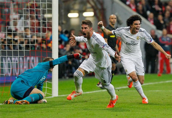 Ο Σέρχιο Ράμος έχει πετύχει το 0-1 και πανηγυρίζει μαζί με τον Πέπε (29/4/2014)