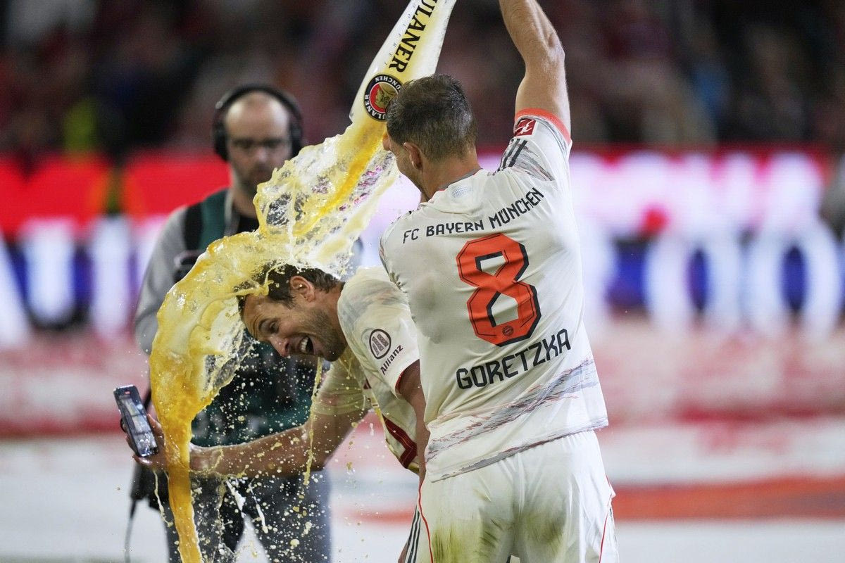 Οι παίκτες της Μπάγερν γιόρτασαν την κατάκτηση του πρωταθλήματος με το καθιερωμένο λουτρό μπύρας με τους Χάρι Κέιν και Τόμας Μίλερ να γίνονται από τους πρώτους στόχους.