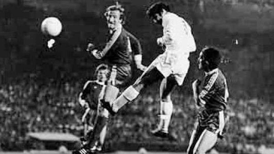 Ο Γκερντ Μίλερ σκοράρει απέναντι στη Ρεάλ. Αριστερά διακρίνεται ο Βιθέντε ντελ Μπόσκε (φωτ. Marca)