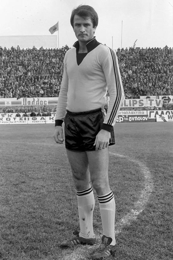 Ο Ντούσαν Μπάγεβιτς ποζάρει πριν παίξει για πρώτη φορά ως ποδοσφαιριστής της “Ένωσης” στις 18/12/1977 στη Νέα Φιλαδέλφεια.