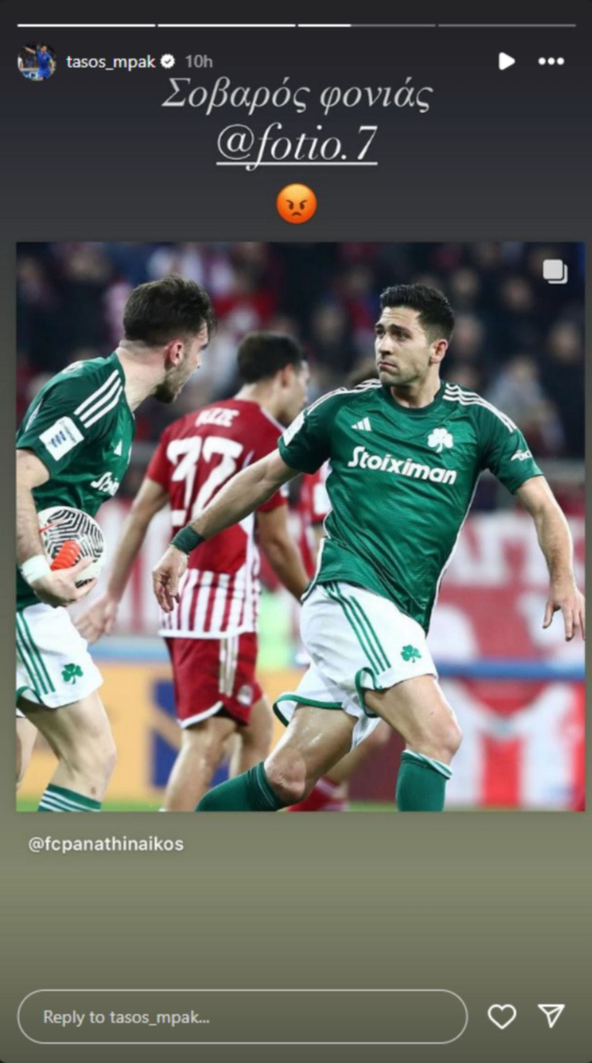 Το στόρι του Μπακασέτα για τον Ιωαννίδη Instagram /@tasos_mpak