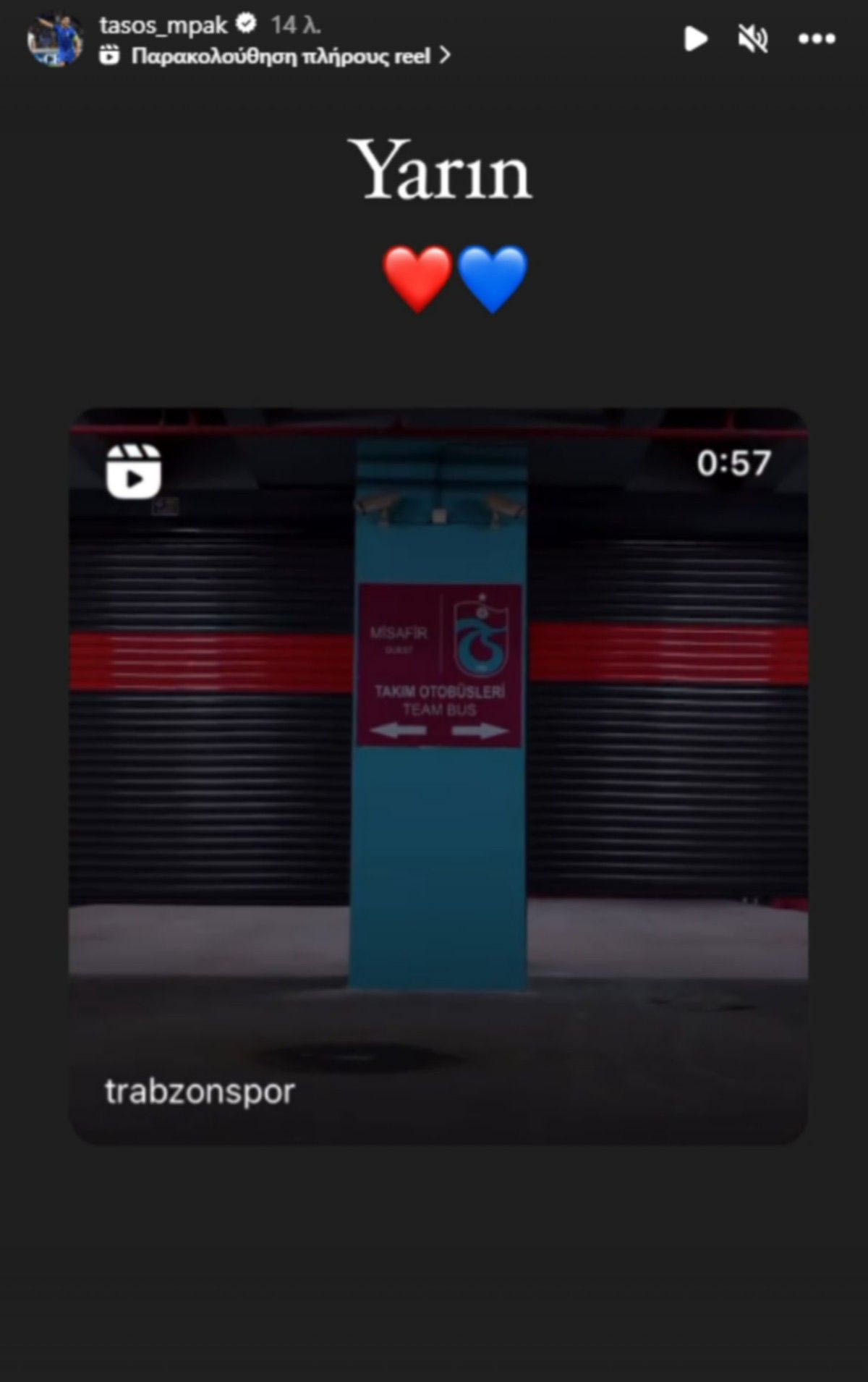 Ο Μπακασέτας μέσω του προφίλ του στο Instagram έκανε repost του VIDEO, γράφοντας “Yarin”, το οποίο σημαίνει “αύριο”.