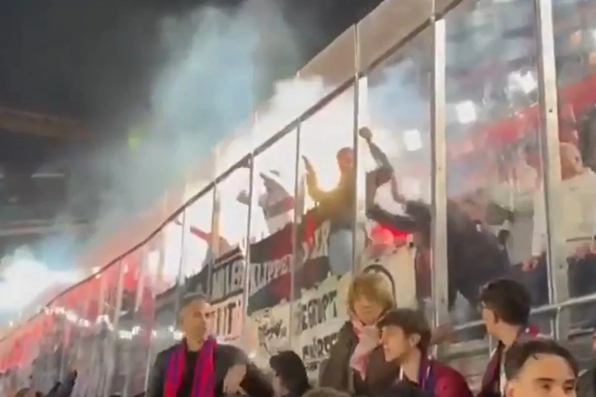 Οι οπαδοί των Γερμανών έκαναν κάτι παραπάνω από αισθητή την παρουσία τους στις κερκίδες του Καμπ Νόου, αφού πέταξαν φωτοβολίδες και ποτήρια, ενώ κόντεψαν να γκρεμίσουν το προστατευτικό που τους χώριζε από εκείνους των μπλαουγκράνα.