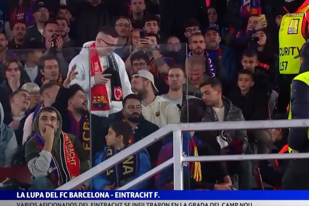 Αρκετοί οπαδοί της Άιντραχτ Φρανκφούρτης κατάφεραν να διεισδύσουν μέσα στους φιλάθλους της Μπαρτσελόνα και απομακρύνθηκαν, αφού πανηγύρισαν γκολ της ομάδας τους.