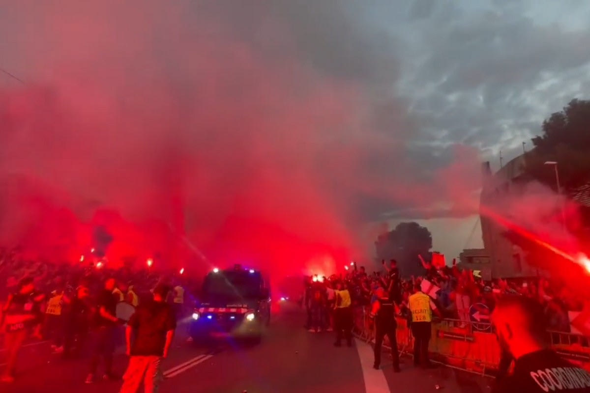 Οι Καταλανοί άναψαν συγκεντρώθηκαν πολλές ώρες πριν από τη σέντρα και φώναζαν συνθήματα μέχρι την άφιξη της αποστολής. Όταν εμφανίστηκαν τα οχήματα άναψαν δεκάδες πυρσούς, δημιουργώντας εντυπωσιακή ατμόσφαιρα.